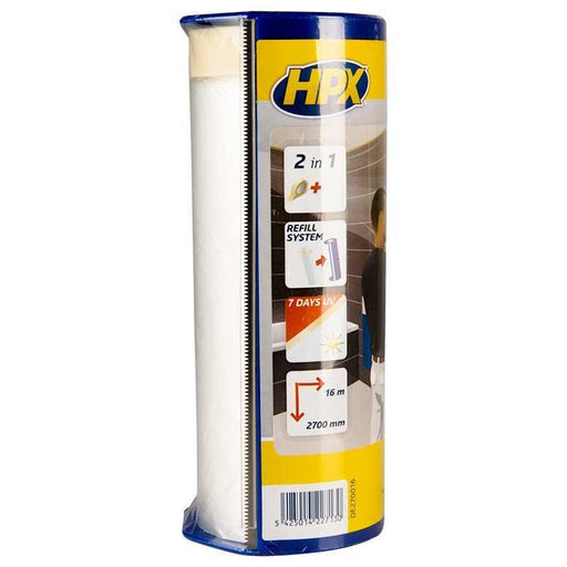 HPXDE270016 წებვადი ქაღალდის ლენტი ჩამოსაშლელი ცელოფნით და დისპანსერით 2700მმ X 16მ