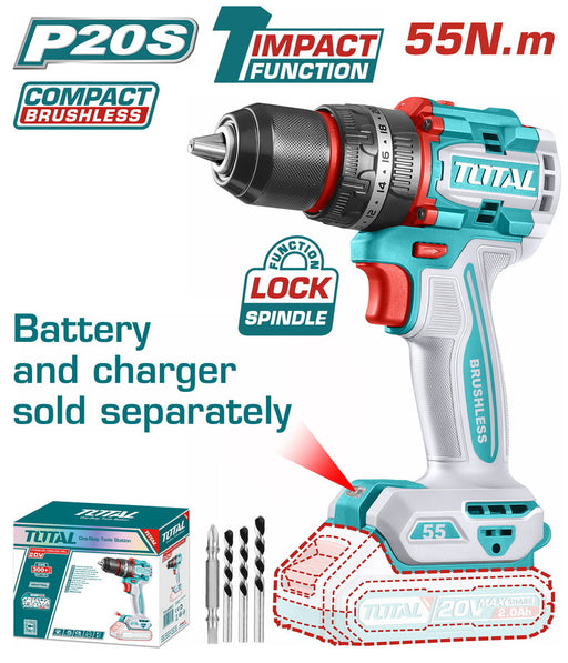 TOTALაკ. ბურღი-სახრახნ. 20ვ, 55ნმ, დარტყმითი
