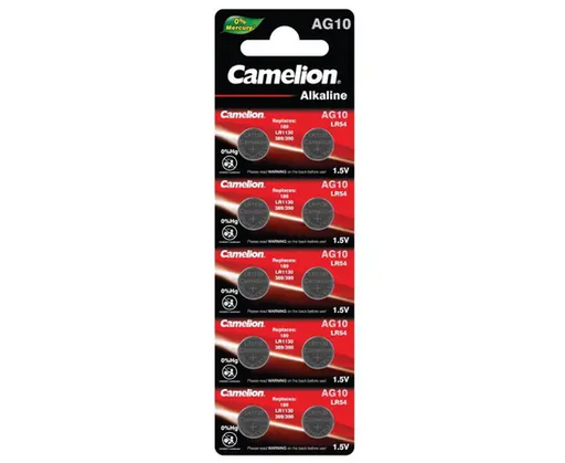 4981 Camelion Alkaline (mercury free) AG10 ელემენტი-ღილაკი, 10ც შეკრა AG10-BP10(0%HG)