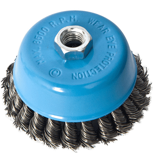 FWB14100A რკინის სახეხი მავთული-რბილი ბალგარკაზე 4" M14/Cup wire brush with nut 4"