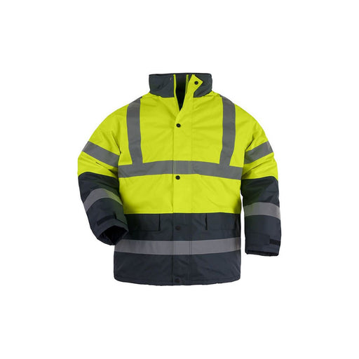 WJ002Y-N 2XL ზამთრის ქურთუკი ყვითელი ლურჯში ამრეკლებით, სარჩული 180გრ